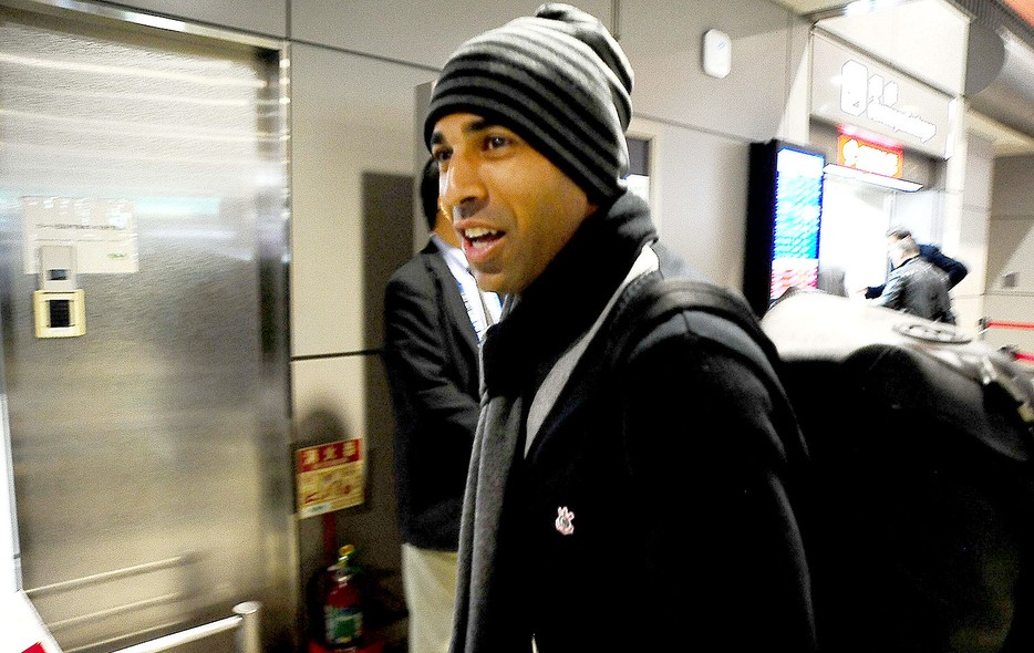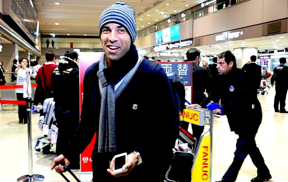 Emerson na chegada do Corinthians ao Japão - Marcos Ribolli / Globoesporte.com