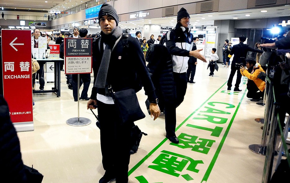 Chicão e Cássio passam pelos jornalistas no aeroporto de Narita - Marcos Ribolli / Globoesporte.com
